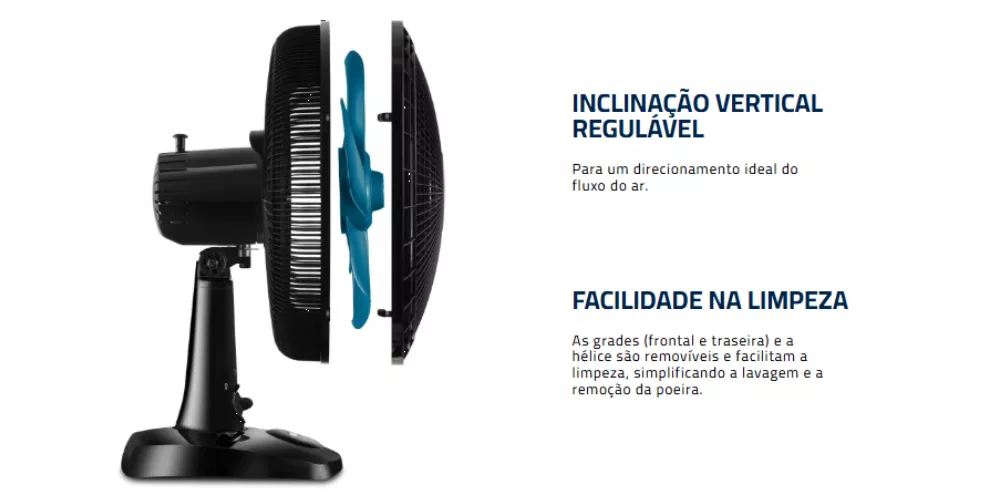 A grade frontal removível oferece mais facilidade na limpeza das hélices, o que simplifica a lavagem e a remoção de poeira, e garante melhor qualidade do ar.